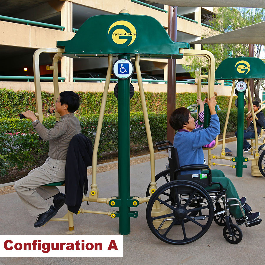 Greenfields’ units are designed to accommodate the majority of users age 14 and above; however, due to the nature of outdoor fitness equipment, units are “one size fits most”.