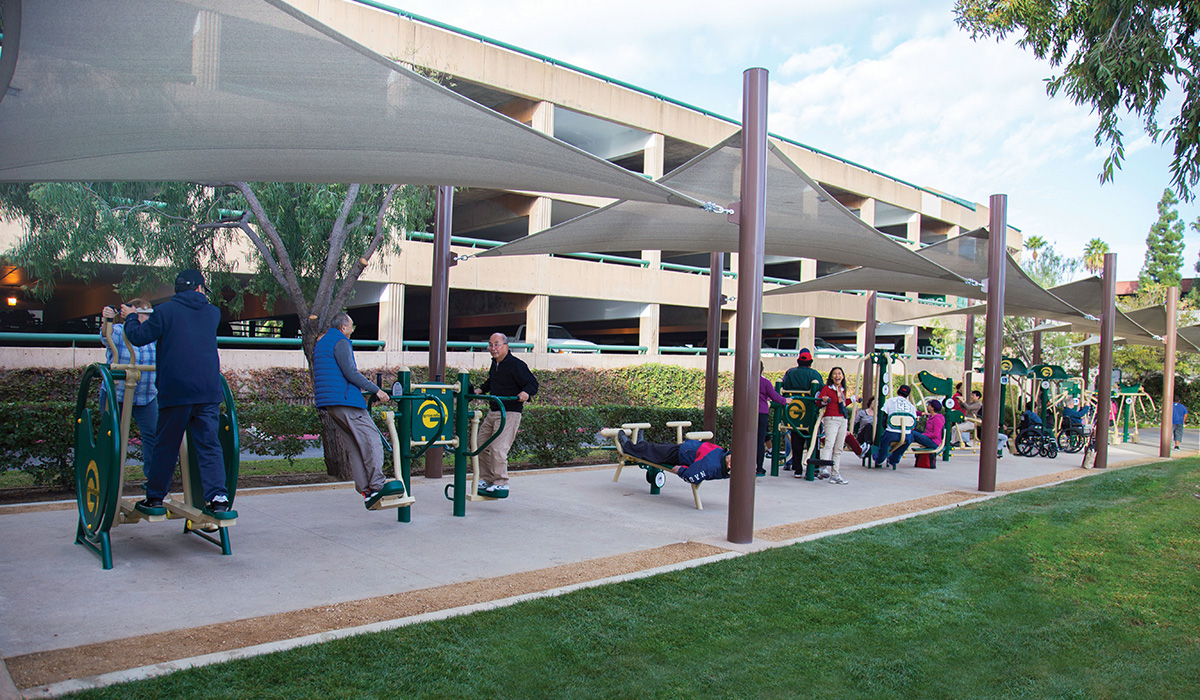 The perfect fitness solution for seniors! The Signature Accessible Senior Package features 11 unit that accommodate 28 users, including five in wheelchairs. An inviting, low-impact and social addition to any outdoor space, this package creates a fun and unintimidating environment for seniors to exercise.